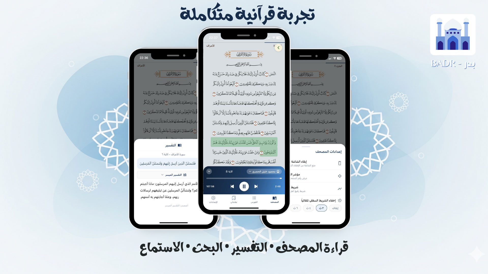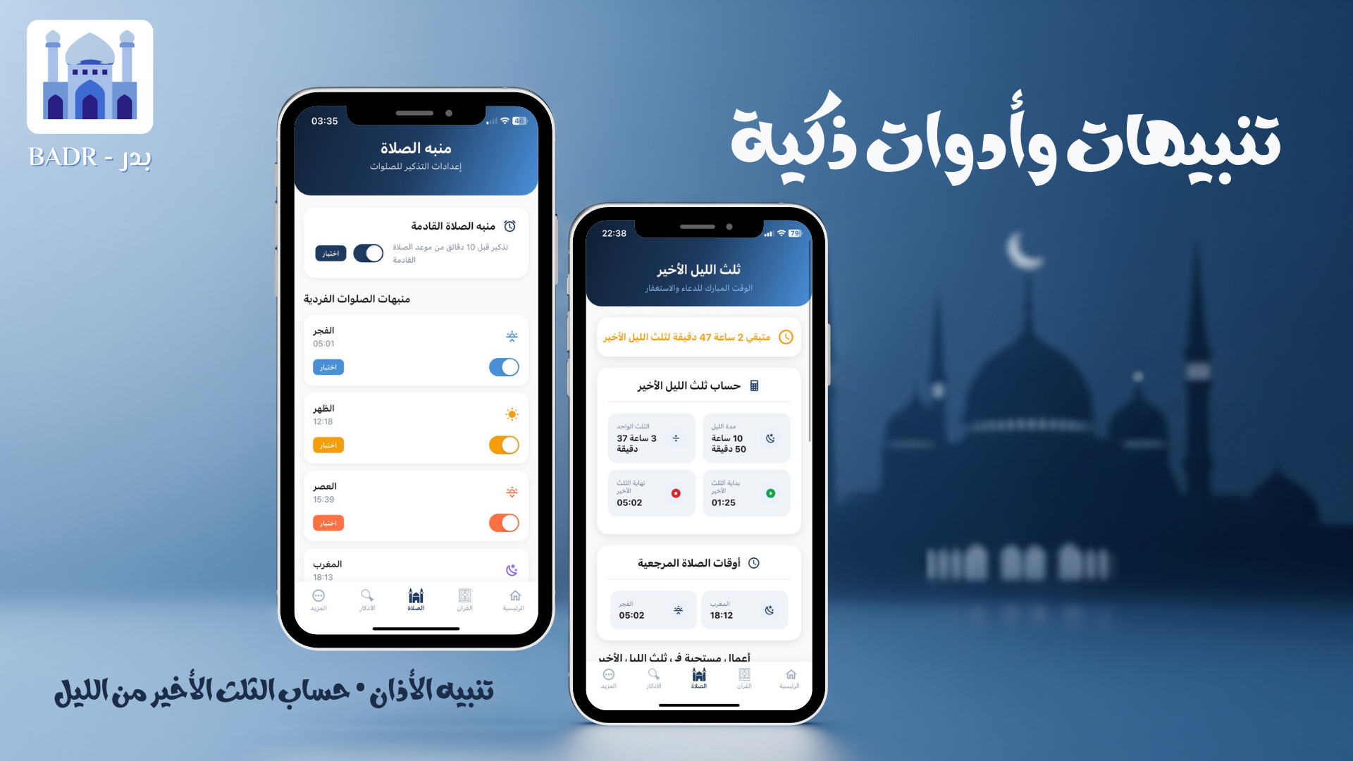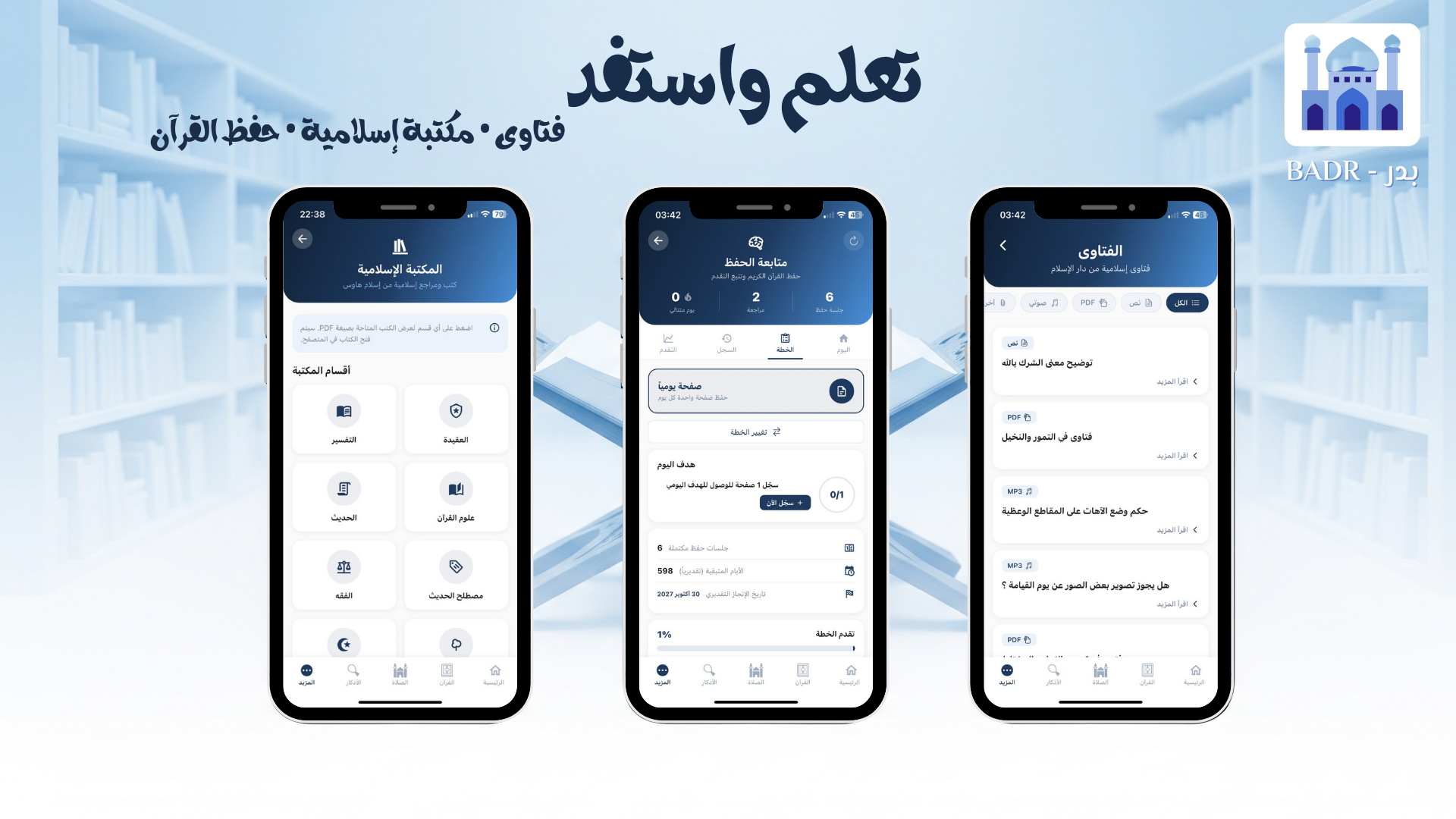 BADR is a comprehensive Islamic mobile application created from a meaningful vision: using technology to support Muslims in their daily spiritual life through a respectful, organized, and practical digital experience.