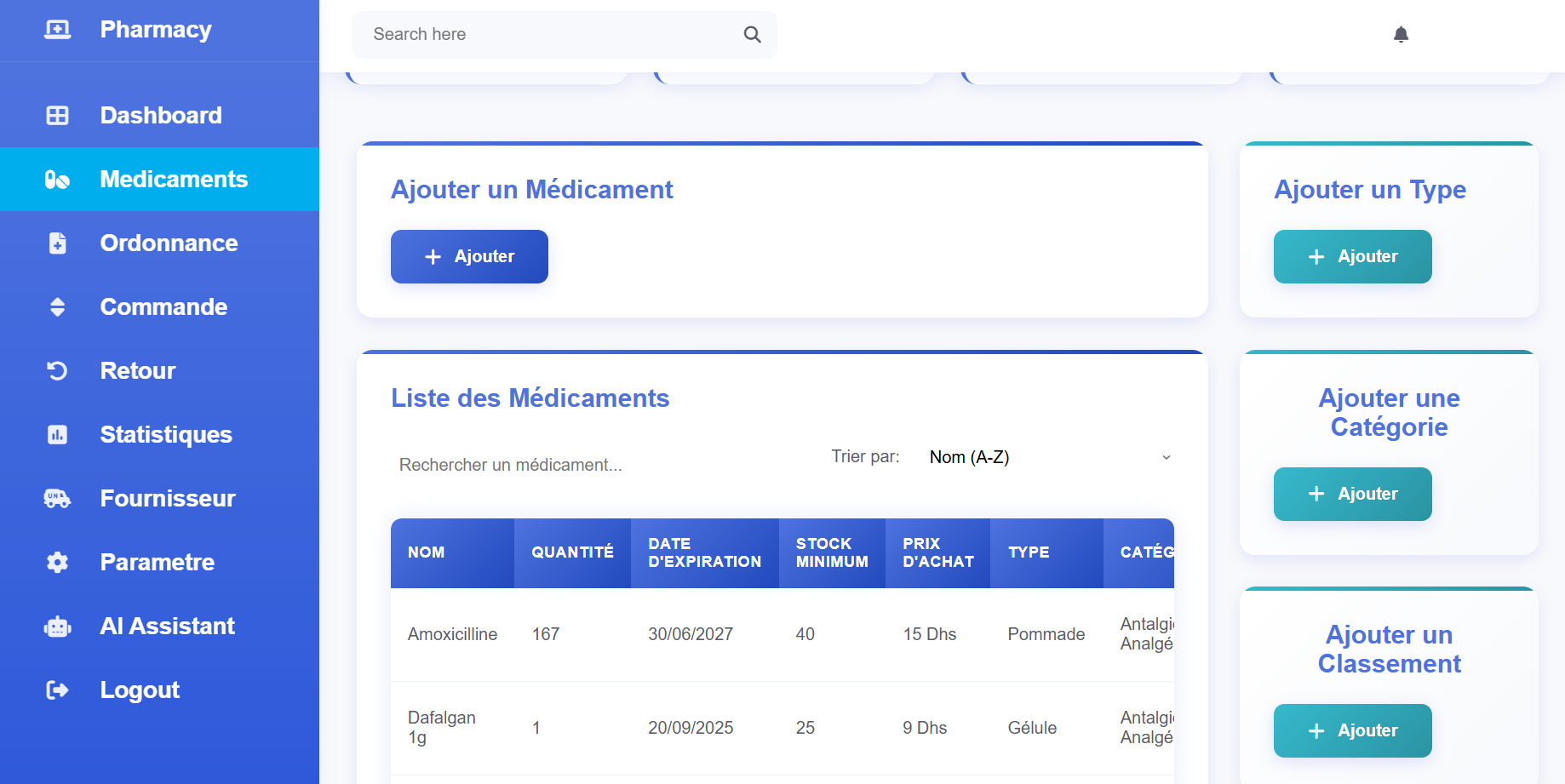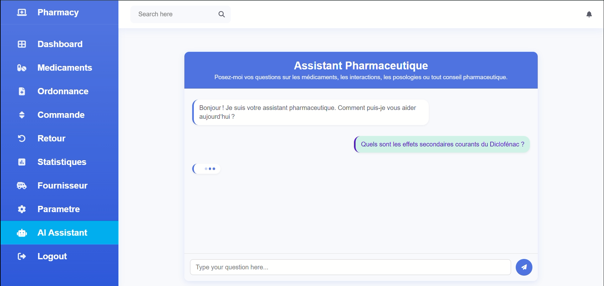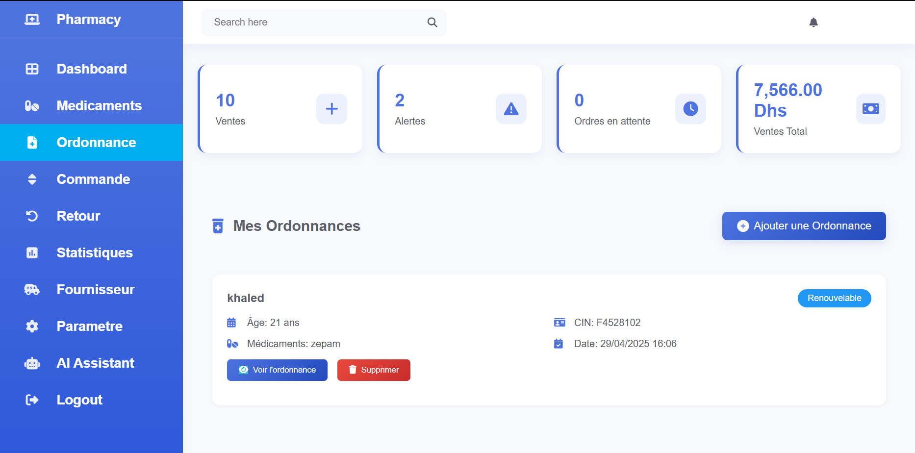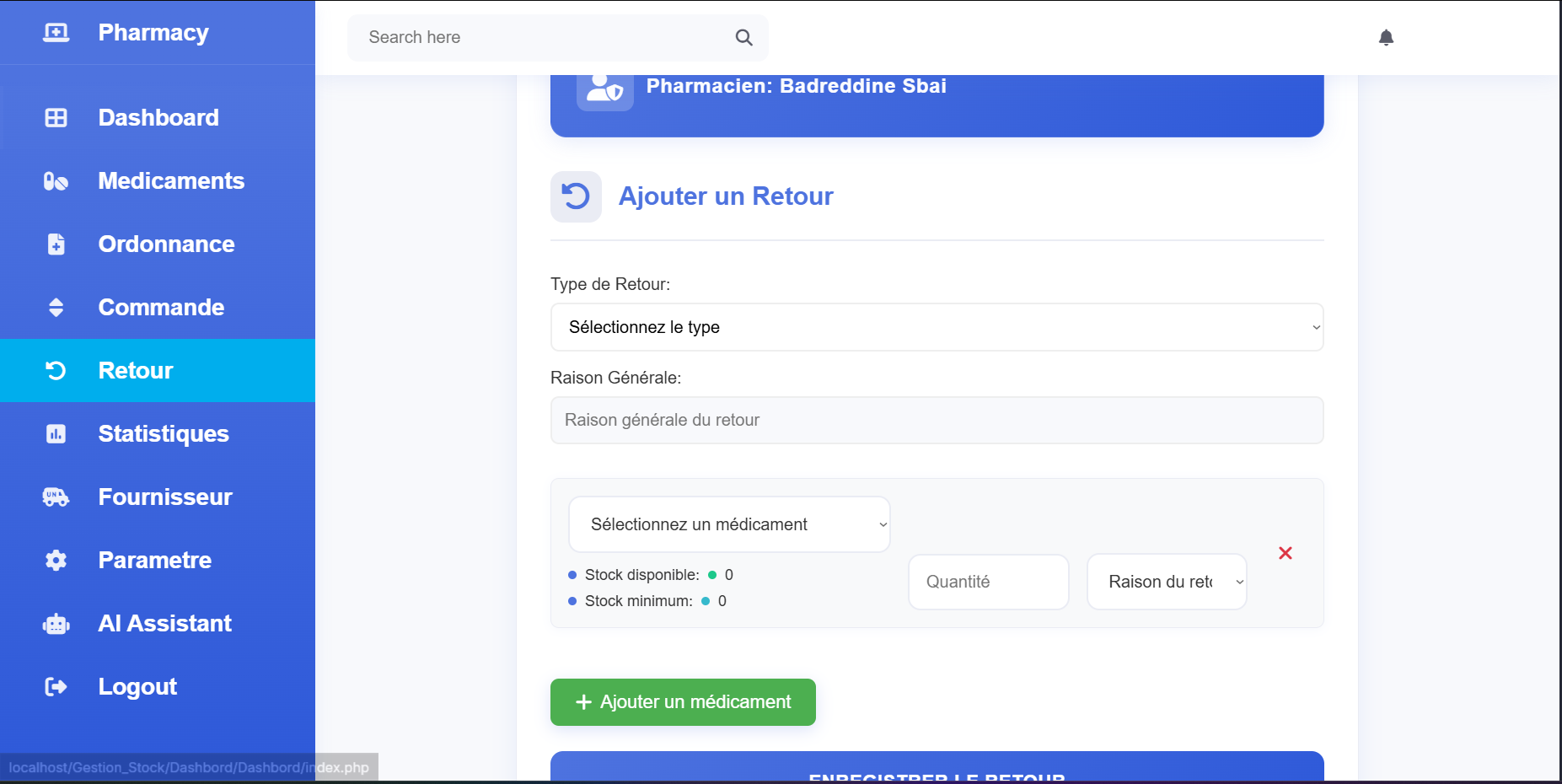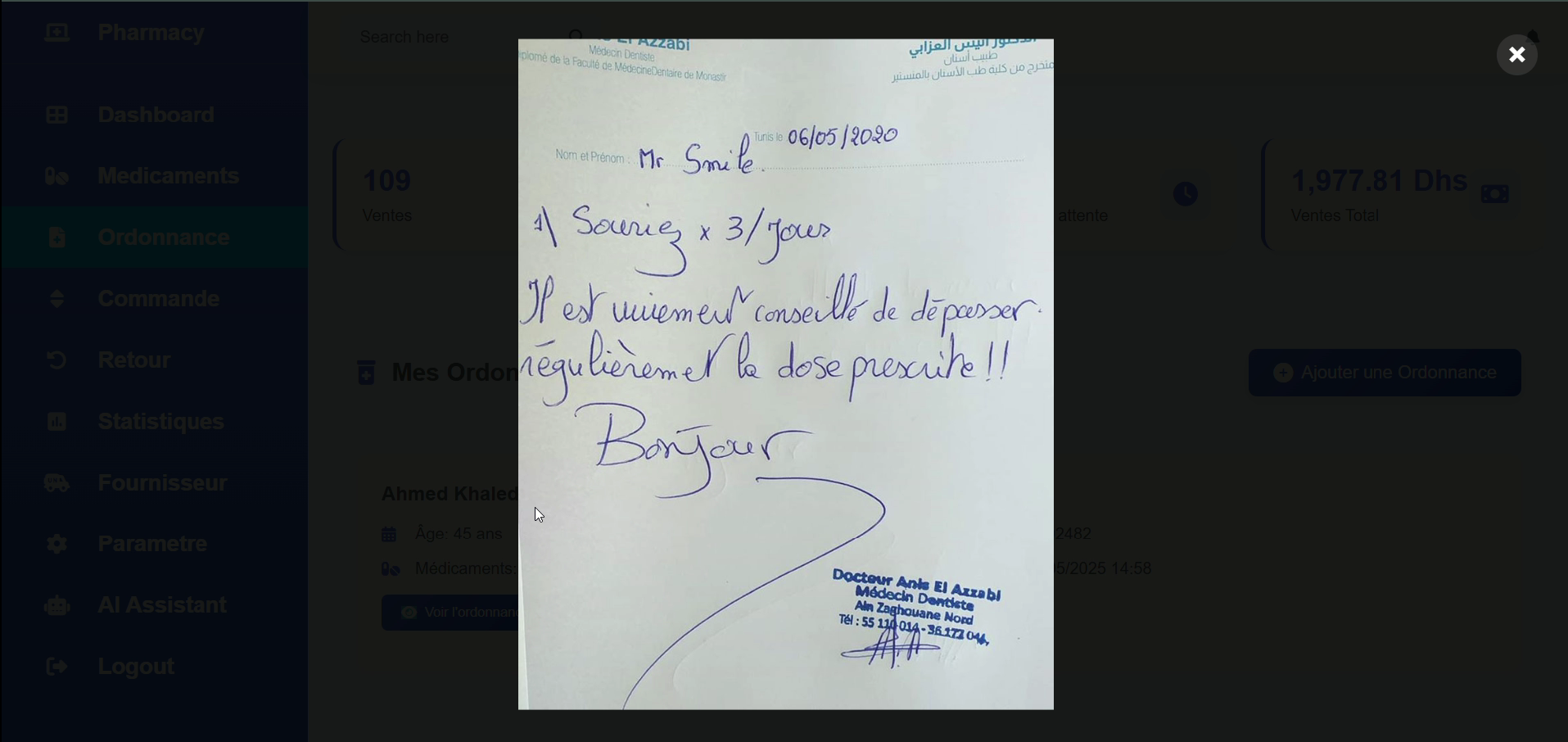 On the implementation side, the solution uses a dynamic web module built with PHP, AJAX, and prepared statements to ensure security, responsiveness, and effective handling of sensitive data. It also includes pharmaceutical and stock management features, along with an AI chatbot specialized in answering pharmaceutical-related questions.
