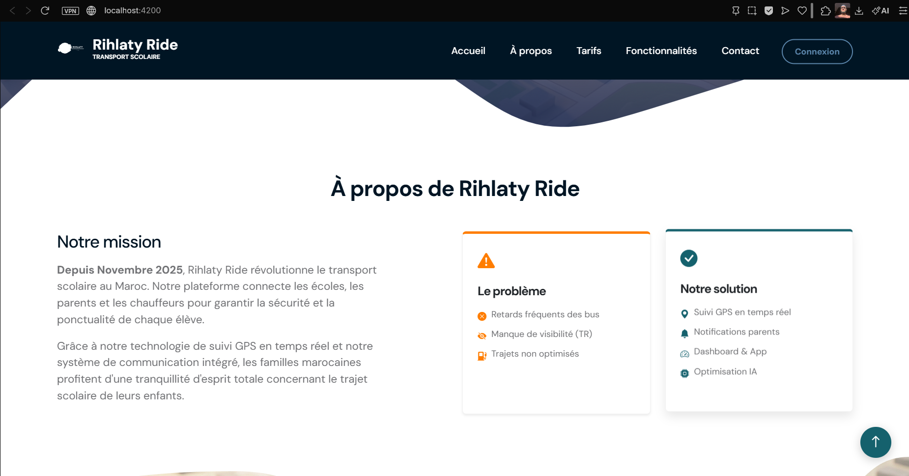 Rihlaty Ride is a smart school transport management platform designed to improve safety, visibility, communication, and operational efficiency in school transportation. The system connects three main actors: parents, drivers, and schools.